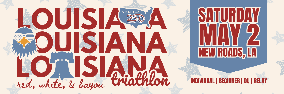 Race Louisiana Triathlon, proudly serving as the 2025 USAT State Championship Triathlon! Race the Standard Sprint Distance with an 800-meter swim, an 18-mile bike ride, and a 5K run, or try our Beginner Division featuring a 400-meter swim, perfect for those new to the sport. Team up with friends in our 2 or 3 Person Relay, or take on the Duathlon challenge with an 18-mile bike and 5K run. Join us on False River at the heart of Louisiana!